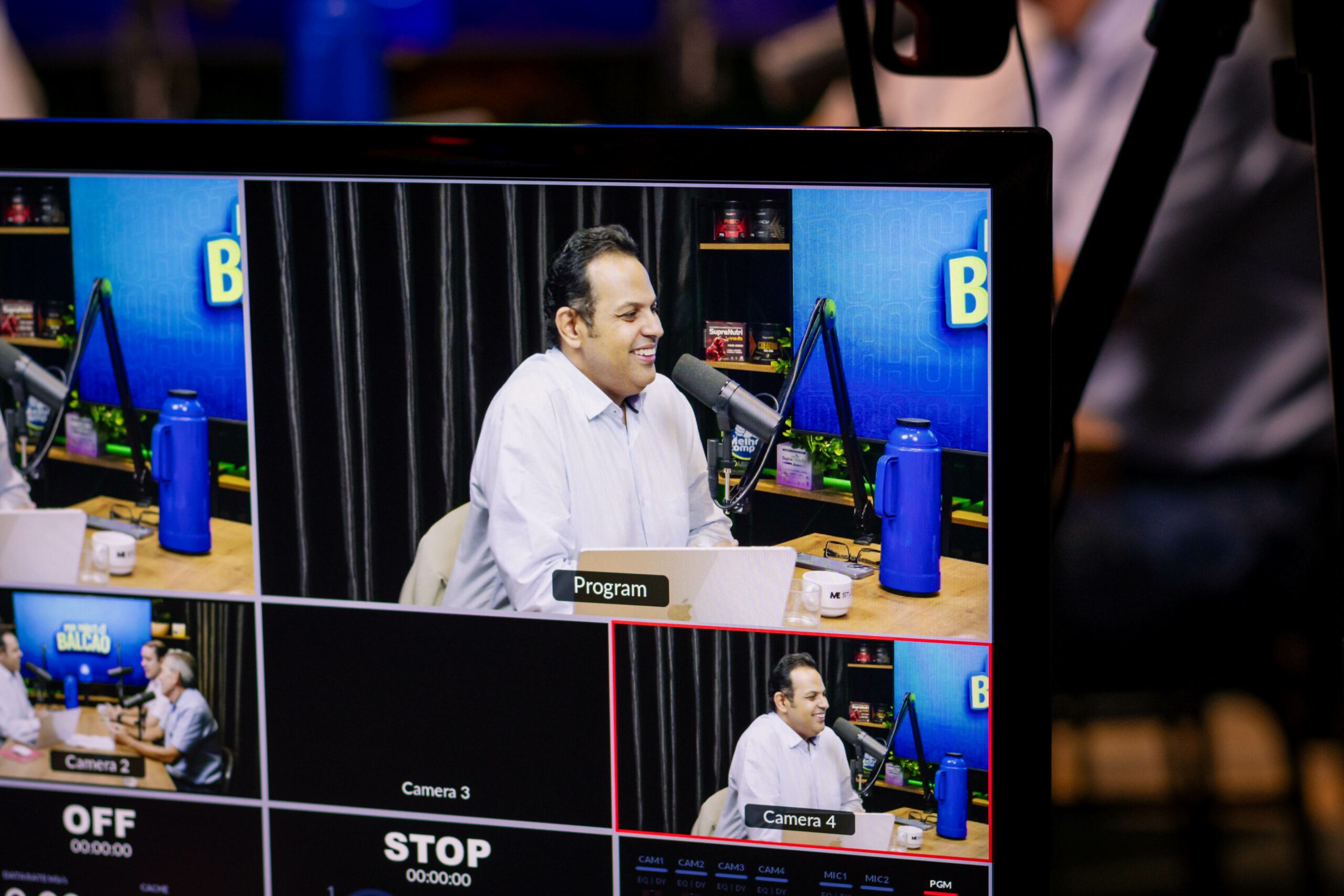 Nosso Estúdio B é um estúdio exclusivo e totalmente equipado para gravação de podcasts, proporcionando aos clientes um ambiente profissional de alta qualidade para a criação de seus conteúdos.